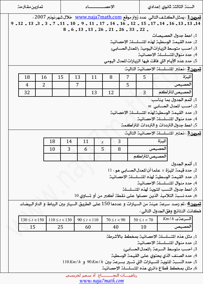 تمارين محلولة لدرس الإحصاء لتحضير شهادة التعليم المتوسط شبكة التعليم الجزائرية الموقع الأول للدراسة في الجزائر