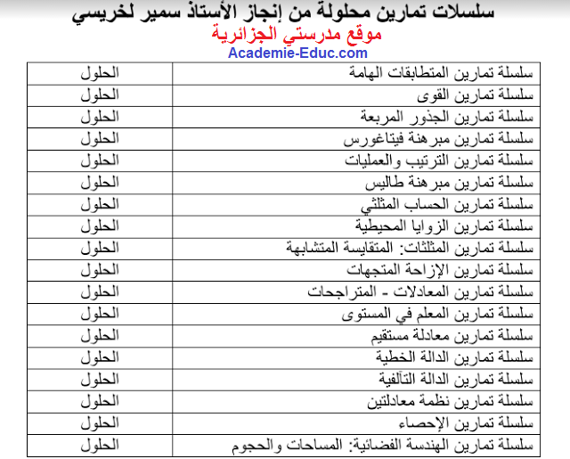 تمارين في مادة رياضيات السنة الرابعة 4 متوسط مع الحل
