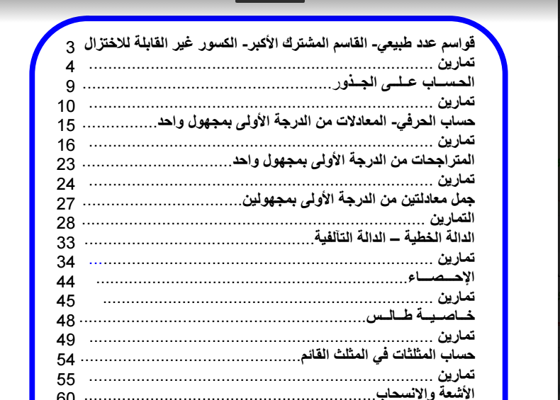 كتاب رائع في الرياضيات للسنة الرابعة متوسط دروس تمارين مواضيع حلول