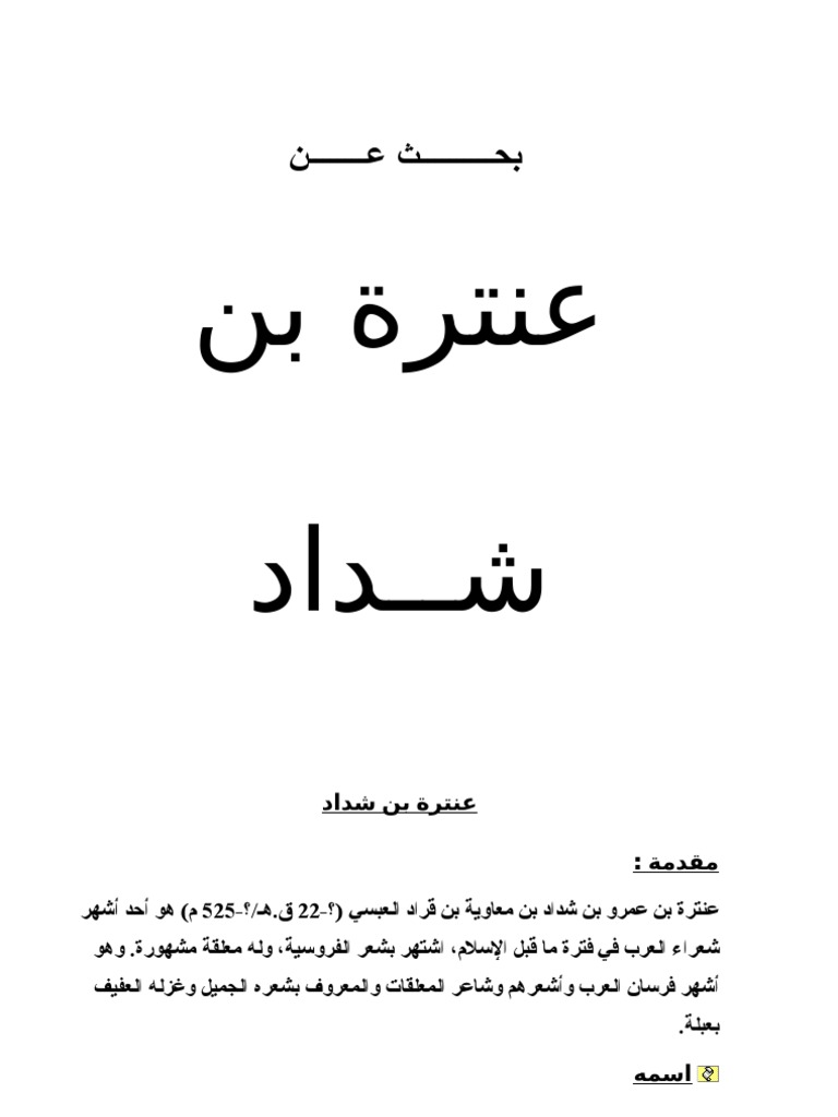 بحث عن عنترة بن شداد موسوعة ورقات العربية