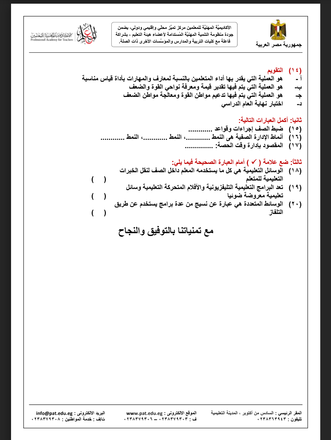 السبورة ننشر اجابة اسئلة الـ 3 نماذج الخاصة بامتحانات المعلمين من أجل الترقى 2019 2018 20 سؤالا فى 30 دقيقة