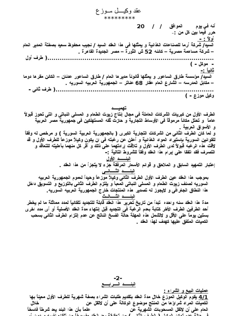 نموذج وصيغة عقد توزيع منتجات مميز Pdf Doc المكتبة القانونية