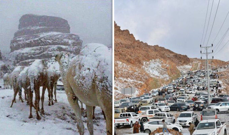 The desert landscape in the northwest corner of the country to resemble that of the arctic tundra as camels navigated the snow. Heavy snowfall blanketed the northwestern regions of saudi arabia particularly in the dahr mountains on friday.
